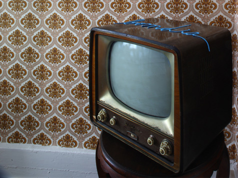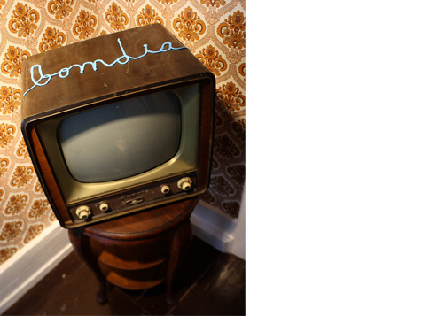 Fio de algodão, TV, mesa em madeira, ruído rosa