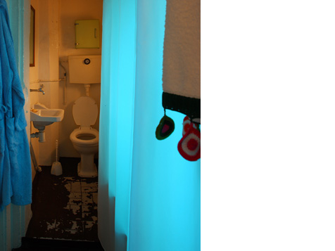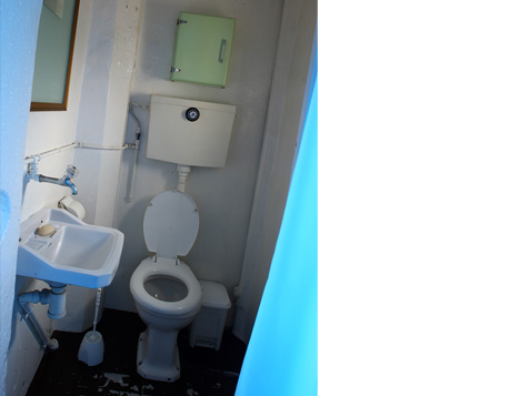 Espelho, farmácia metálica com objectos usados