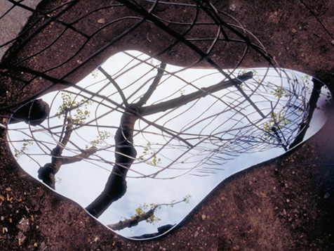 Espelho, ferro niquelado, madeira tingida