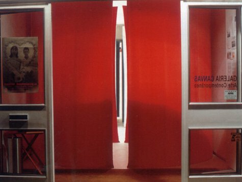 Quando chegam à galeria os fruidores são marcados num dos braços com um carimbo cujo desenho é o sol da minha tatuagem e deparam-se com uma cortina/pele em veludo cor-de-laranja que cobre toda a fachada. O rasgo vertical ao centro permite-lhes a entrada num espaço/corpo ovalóide em veludo vermelho-sangue, quente e denso...
