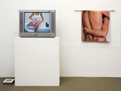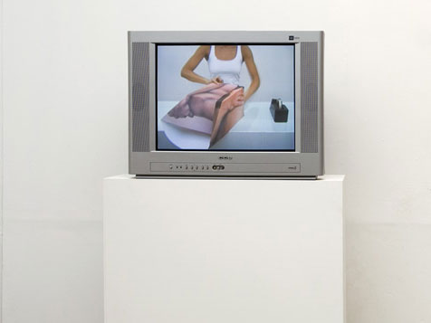 Vídeo( 7'20'' loop) instalação com TV, papel de Embrulho impresso, edição assinada e varão em aço inox