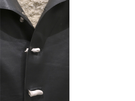 Assim, um cordeiro é vestido com pele de lobo por uma costureira dedicada que, trabalhando arduamente, deixa a marca dessa dádiva de sacrifício nos dedos/dedais de prata que, como botões, ora mostram o lobo ora deixam revelar o cordeiro.