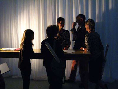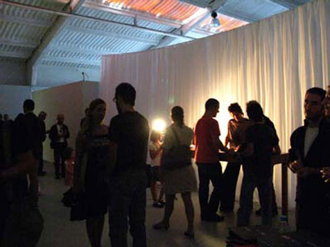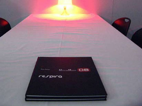 Por um momento, em todo o espaço de exposição, revelada quando as cortinas caem, uma única palavra: respira.